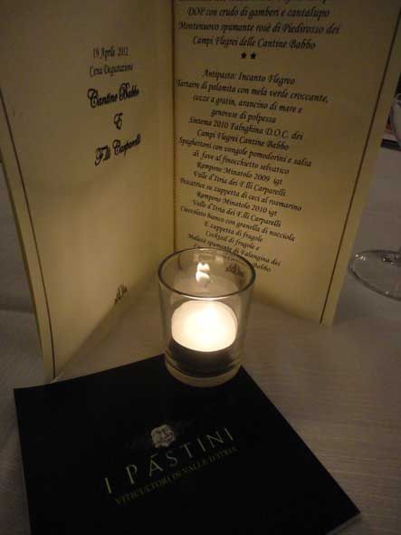 Compagnia a sinistra e convivialità a destra di ognuno di noi, gli ospiti che aleggiavano leggiadri nella sala e che hanno stimolato molti degli interventi dei presenti, uniti dalla voglia di provare emozioni e dalla curiosità di scoprire le eccellenze che la nostra meravigliosa penisola sa regalare: i vini dei Campi Flegrei campani ospitano quelli della Valle d’Itria pugliesi, la Falanghina ospita, nei calici (non gli stessi), il Fiano Minutolo, le storie dei viticultori, quelle de “Le Cantine Babbo” si intrecciano con quelle de “I Pàstini”, il campano suolo sabbioso e vulcanico si confronta con quello pugliese calcareo.