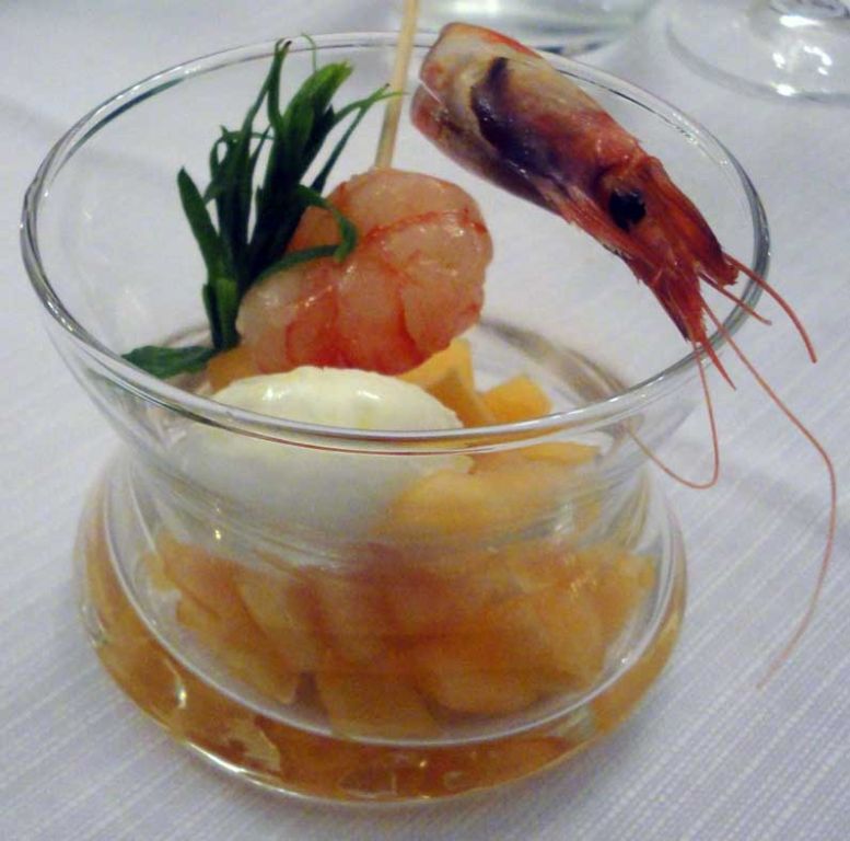 Mentre, quindi, il piedirosso rosato faceva emergere dai calici tutta la sua CO2, nome propiziatorio ed evocativo, “Montenuovo”, alla sua seconda vendemmia (vino spumante extra-dry rosè da uve piedirosso, 12% vol. delle Cantine Babbo) ed emergevano tutti i suoi sentori fruttati, ma anche una delicatissima nota speziata, il candore della mozzarella di bufala campana (quella DOP) unita alle più fiammeggianti e variegate tinte del crudo di gamberi ed alle più solari tinte dei pezzetti di cantalupo ci dava il Benvenuto.