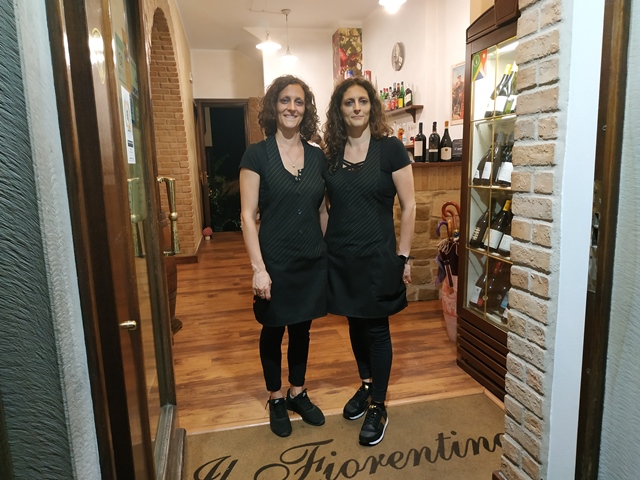 La sala interna de Il Fiorentino è rustica e familiare: può ospitare circa 80 posti, ma esiste anche una parte esterna con giardino con altri 60 posti a sedere e una cantina, dove è possibile cenare in 2 o 4 persone. Il servizio è veloce e molto accogliente: Angela e Sara hanno un sorriso contagioso.