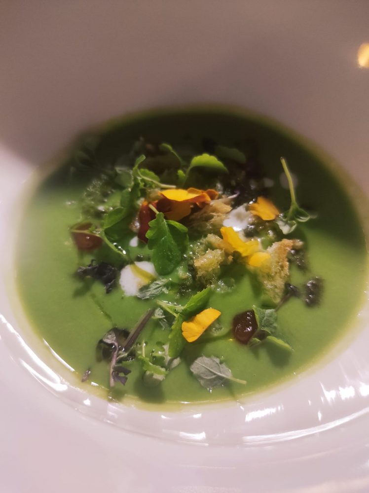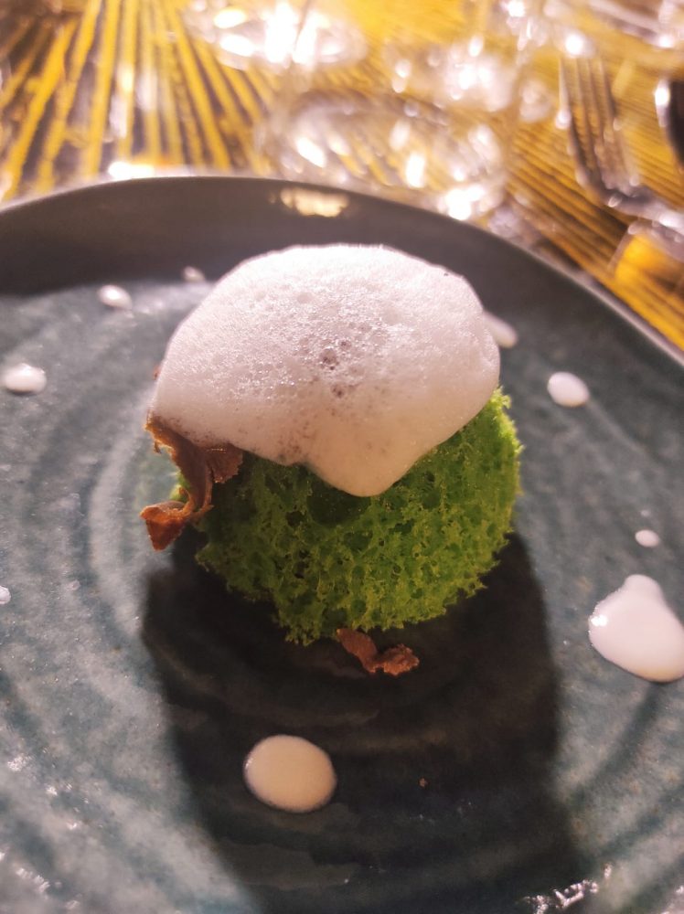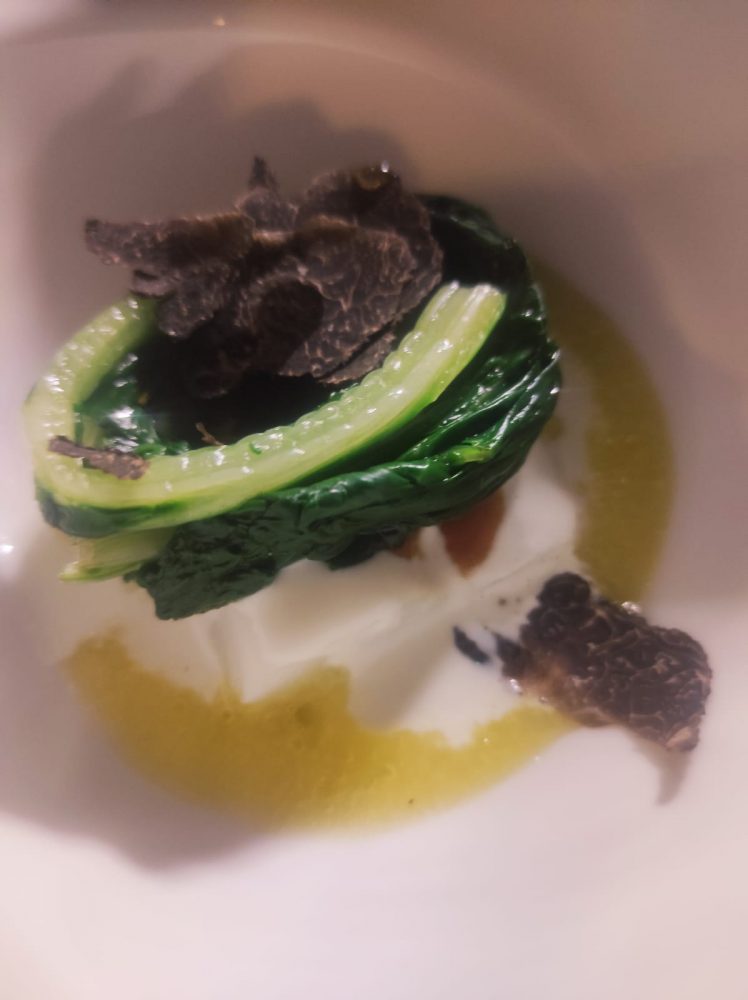 Dal ristorante Oltremare di Maiori per una sera al Winehouse, per omaggiare l’evento “Cibo e Musica” in cui ha proposto il menu Spring Green: Spugna di erbette con gelato di mela, zenzero, bottarga di tonno rosso ed effervescenza di limone fermentato, Passatina di piselli tiepida con insalata di fiori, camomilla, burrata e carpaccio di triglia, Risotto con crescione, ricciola, gazpacho verde e yogurt allo zafferano, Baccalà affumicato con costina di bieta laccato all’aceto e spuma leggera di cacio capra e tartufo nero. In abbinamento vini La Guardiense.