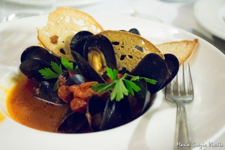 La zuppa di cozze leggermente piccante al profumo di timo. Da copiare, in maniera più assoluta, l’uso del timo in accoppiata con le cozze. E’ praticamente impossibile non usare le valve come cucchiaino per non lasciare nel piatto quel sugo delizioso. Niente vi tratterrà, nemmeno gli spettatori degli altri tavoli.