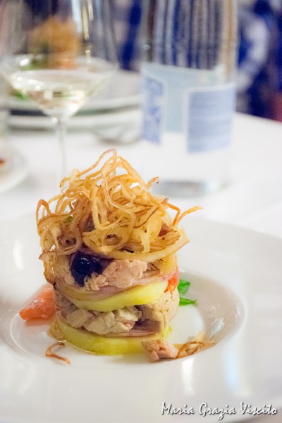 L’insalatina di tonno fresco con la cipolla di Tropea: un piccolo monumento. Qui le diverse consistenze, dal croccante al morbido, e i diversi sapori, dal dolce al salato, danno una soddisfazione difficile da superare.