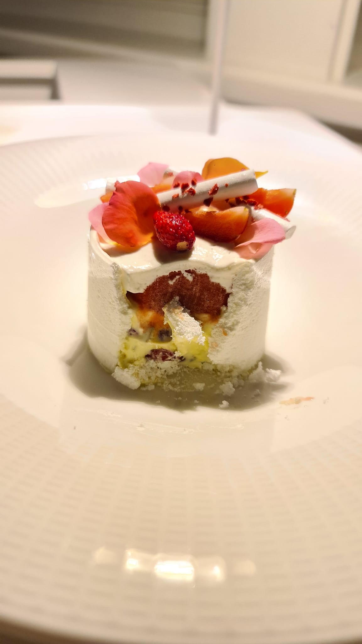 - Vacherin: meringa, fragole, mascarpone, pistacchi e erbe aromatiche