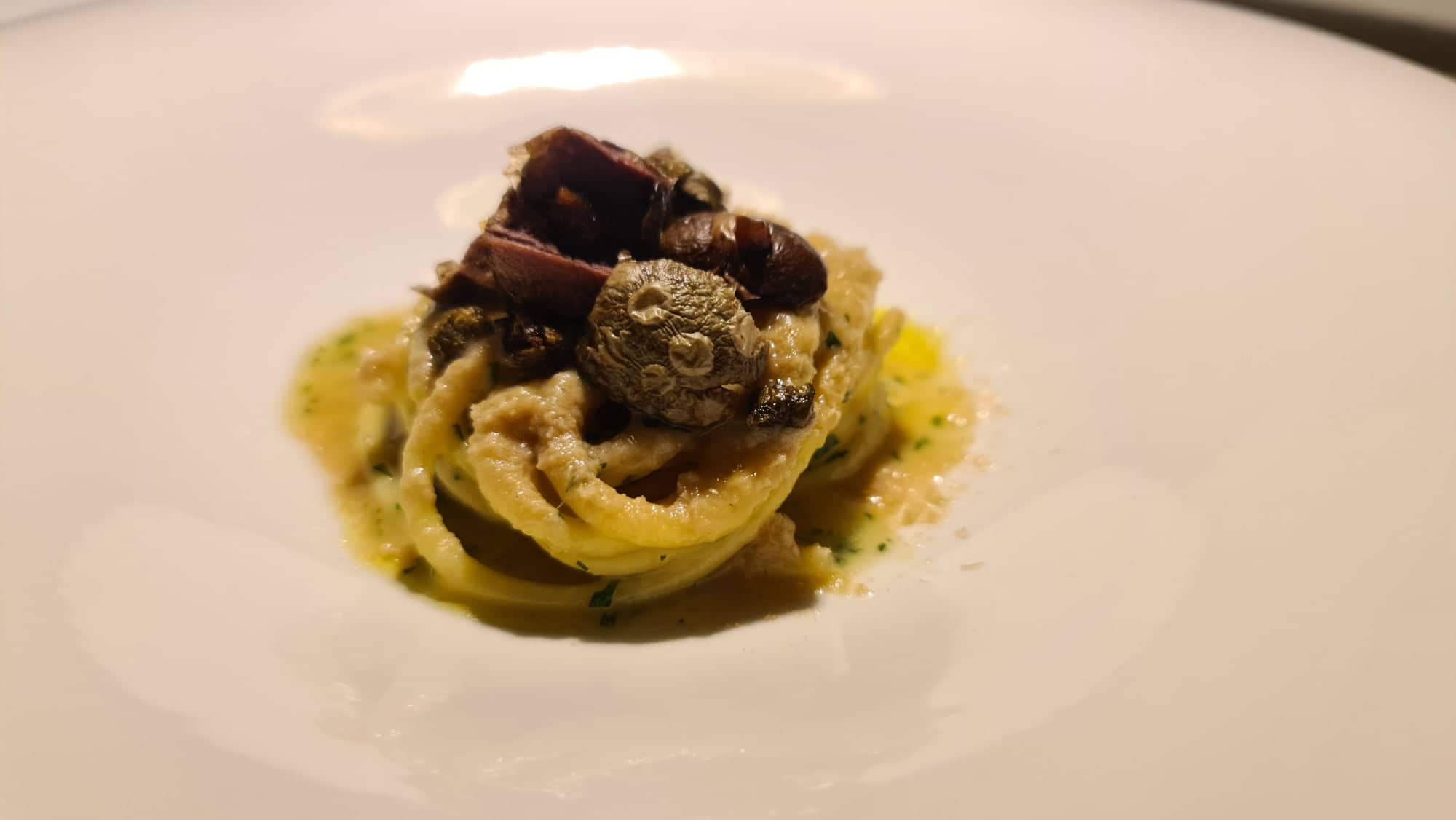 Insalata di ostrica, pesto di rucola, rucola, limone, borragine: sapido, tagliente come la lama di un coltello. Highway to Hell degli AC/DC, le piacevolezze di gusto e sound non albergano da queste parti.