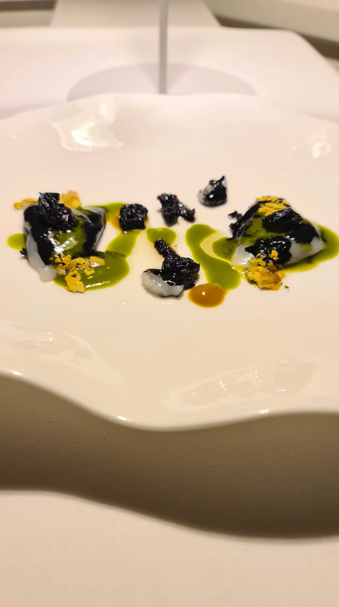 - Seppie crude, pomodoro verde, polline, olive nere essiccate
