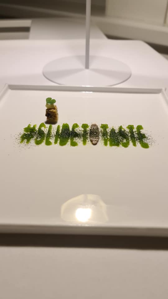 #SLIDETOTASTE: gel di sedano, prezzemolo, alici, plancton, acetosella, acqua di mare, da mangiare con le mani. Ancestrale. Smoke on the Water dei Deep Purple, hard rock senza nessuna mediazione.