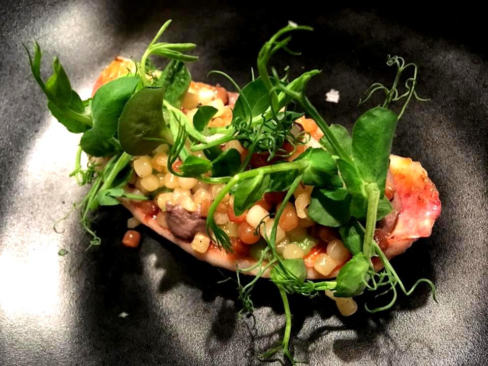 Si devia dal mare con il “Cuore di Roma”. Carpaccio di Cuore, Carciofi, Senape in Grani & Salsa Ponzu. Piatto culturalmente di un altro livello. L’omaggio alla Capitale è evidentissimo. I carciofi così legati alla tradizione del ghetto ebraico, costituiscono il “cuore” della sfera di cuore. Da provare e riprovare. Di Andrea Dolciotti come aveva già esposto madame Virginia di Falco, colpisce soprattutto l’elevato senso culturale e la molteplicità mutevole della sua cifra gastronomica.
