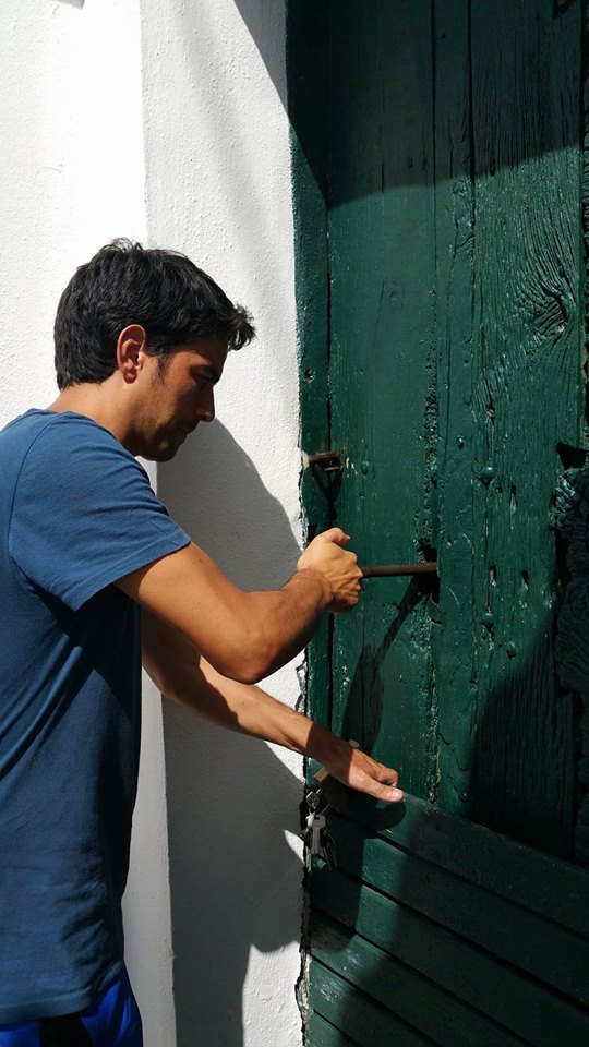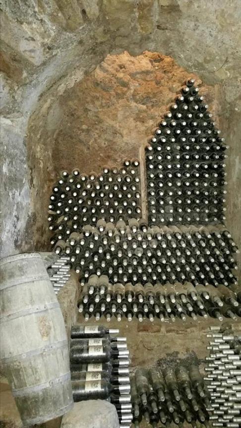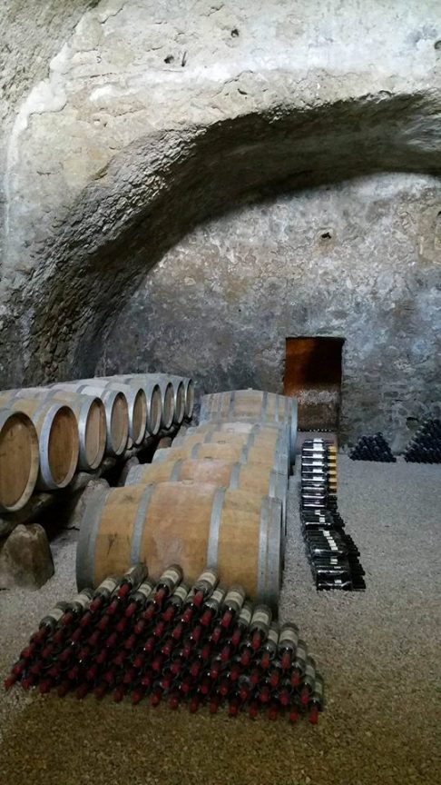 È la casa de nonni, costruita su di un’antica cisterna romana, l’integrazione di una costruzione nell’altra sono simbolo di rispetto e di un continuum tra antichità e passato, qui riposano le bottiglie, affinando nella penombra dietro la pesante porta di legno, verde e scrostata, aperta da una pesante chiave.