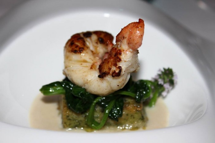 Buoni anche lo scampo con insalata di frutta e verdura alla vaniglia, salsa di yogurt di bufala e l’astice arrosto zuppetta di asparagine di mare migliaccio napoletano crema di acciughe.