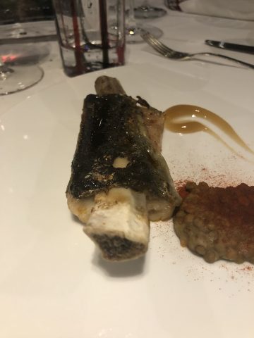 I vini di Borgogna proposti per tutti i piatti della serata sono quelli di Olivier Leflaive viticoltore simbolo di quella regione che vanta 17 ettari di vigne sui grandi terroir di Borgogna è conosciuto per una viticoltura ragionata dove è il territorio che deve emergere e farsi riconoscere per le sue qualità o magari per i suoi difetti. Volnay 2014 un rosso sofisticato nella sua semplicità di beva che profuma di rose rosse e minute violette, dotato di una freschezza da spremere quasi come un succo d’agrume, astringe piacevolmente le gengive con il suo tannino di seta, viene proposto sorprendentemente con lo Spaghettone Pastificio dei Campi alla matticella con Bottarga di tonno Balfegò dello chef D. Lippi, un primo che è un inno al carciofo con la sua salsa cremosa e dolce dove anche la bottarga è ben dosata. Saint Romain 2014 Sous Le Chateau vino agrumato e floreale viene proposto con il l’Anguilla… Hoink Hoink che fa il verso al maiale carnosa e caramellata com’è, qui l’abbinamento risulta adatto.