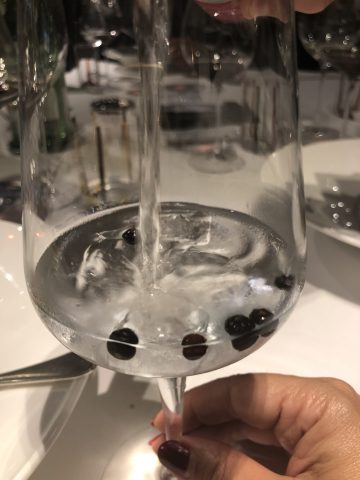 Il dessert Caki e Castagne viene accompagnato dal Gin Monologue prodotto dallo stesso Tomaz Kavcic, servito con fantasia portando in tavola il ginepro fresco la sala si riempie di profumo di macchia mediterranea e sottobosco e la cena si conclude con questo tuffo balsamico, d’altra parte siamo ad Acqua Circus lo spettacolo di fenomeni da cucina “Venghino Siore e Siori Venghino…” gli appuntamenti sono ancora tantissimi con Caterina Ceraudo da Crotone una stella Michelin, Fabrizio Fiorani del ristorante Bulgari di Tokyo che proporrà i suoi dolci ispirati dal Giappone, Martino Ruggeri chef del Pavillon Ledoyen di Parigi, Giancarlo Morelli con il suoi piatti etici e salutistici, Matteo Baronetto del ristorante Del Cambio di Torino con il pensiero nel piatto e infine Enrico Cerea chef del ristorante Da Vittorio da Brusaporto tre stelle Michelin espressione di istinto e fantasia.