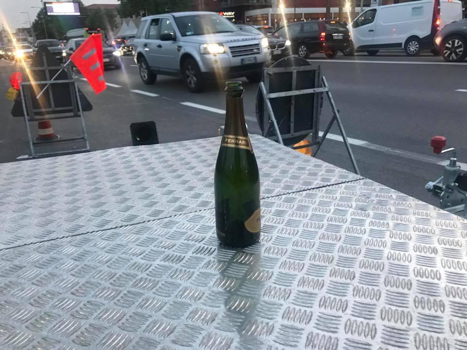 Venusiani atterrati nel pianeta Vinitaly sapete qual è la cosa più figa, trash, divertente da fare a fine giornata? Questa, uscire da Cangrande, fare duecento metri sulla destra e fermarvi nella stazione Agip-Eni dove tra le pompe e la stazione di servizio le auto faranno pian piano posto a panche, sedie e tavolacci occupati da giovani tatuati, rappresentanti in giacca e cravata, sballati, innamorati che in pochi minuti consumano decine di bottiglie di Champagne e Franciacorta, brocche di Spritz abbinando ostriche, scampi, salumi e formaggi.