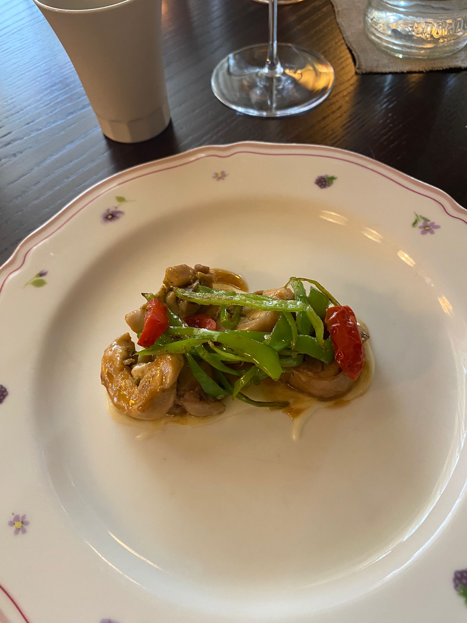 La bontà del piatto ci ha indirizzato anche nella scelta del secondo: Coniglio ai profumi mediterranei con peperoncini friggitelli e pomodorini confettati.
