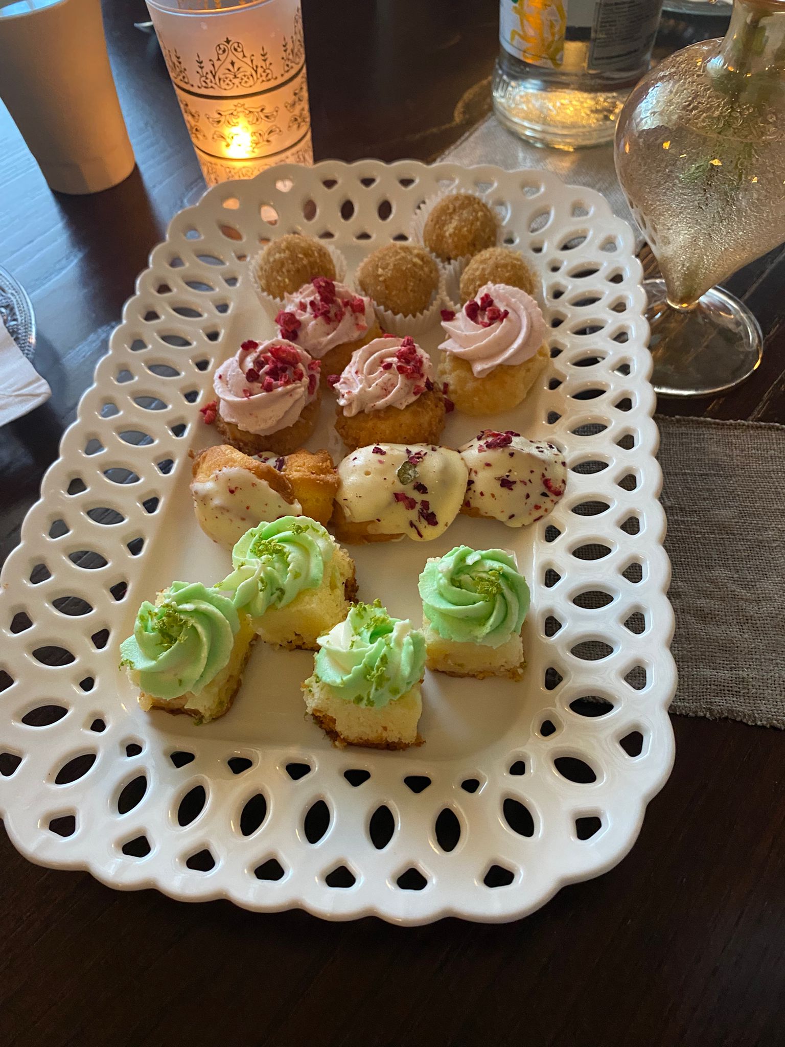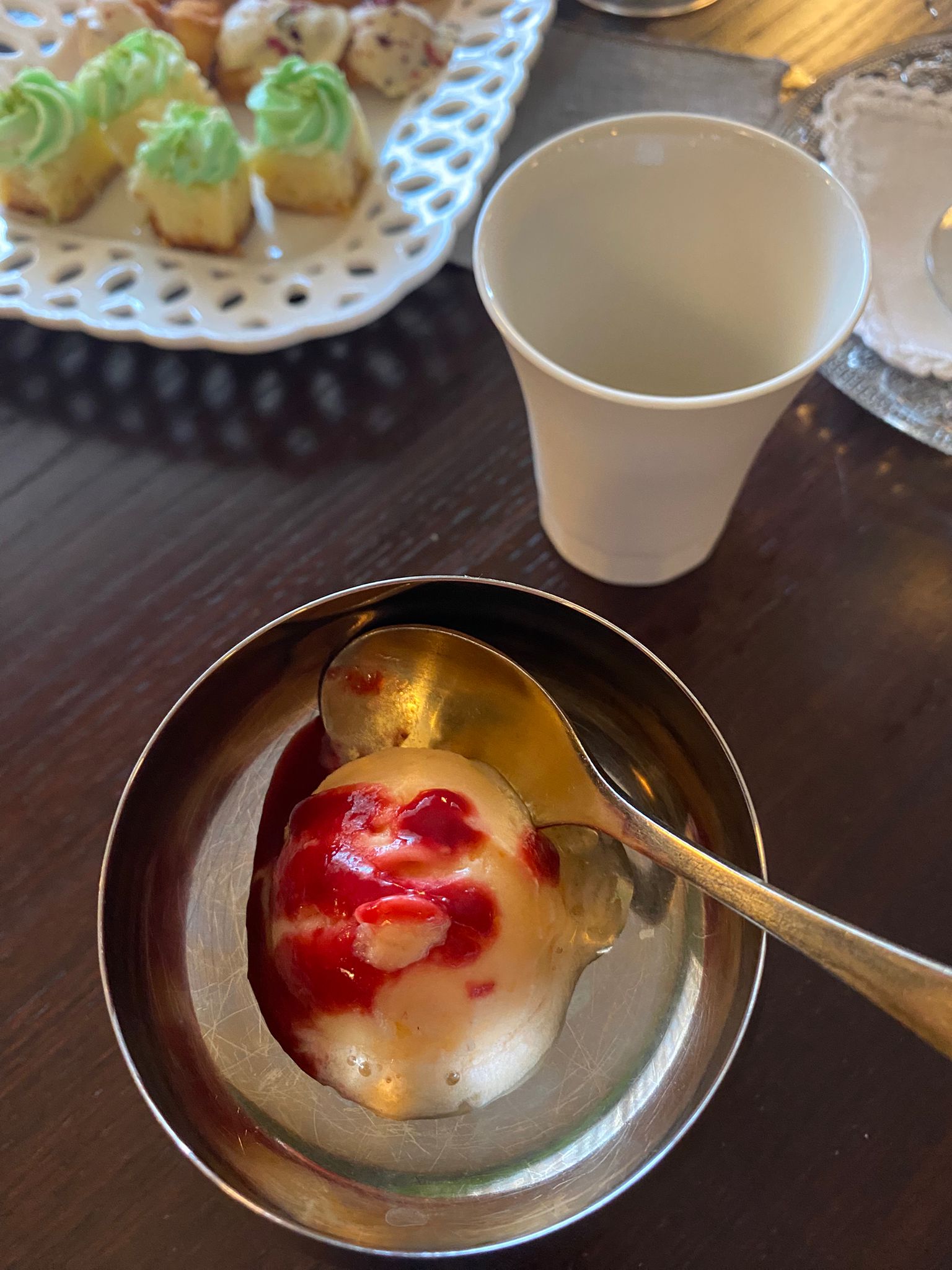Una gioia per gli occhi – e per il palato- la selezione di piccola pasticceria servita in abbinamento con il sorbetto di profumatissimo cantalupo.