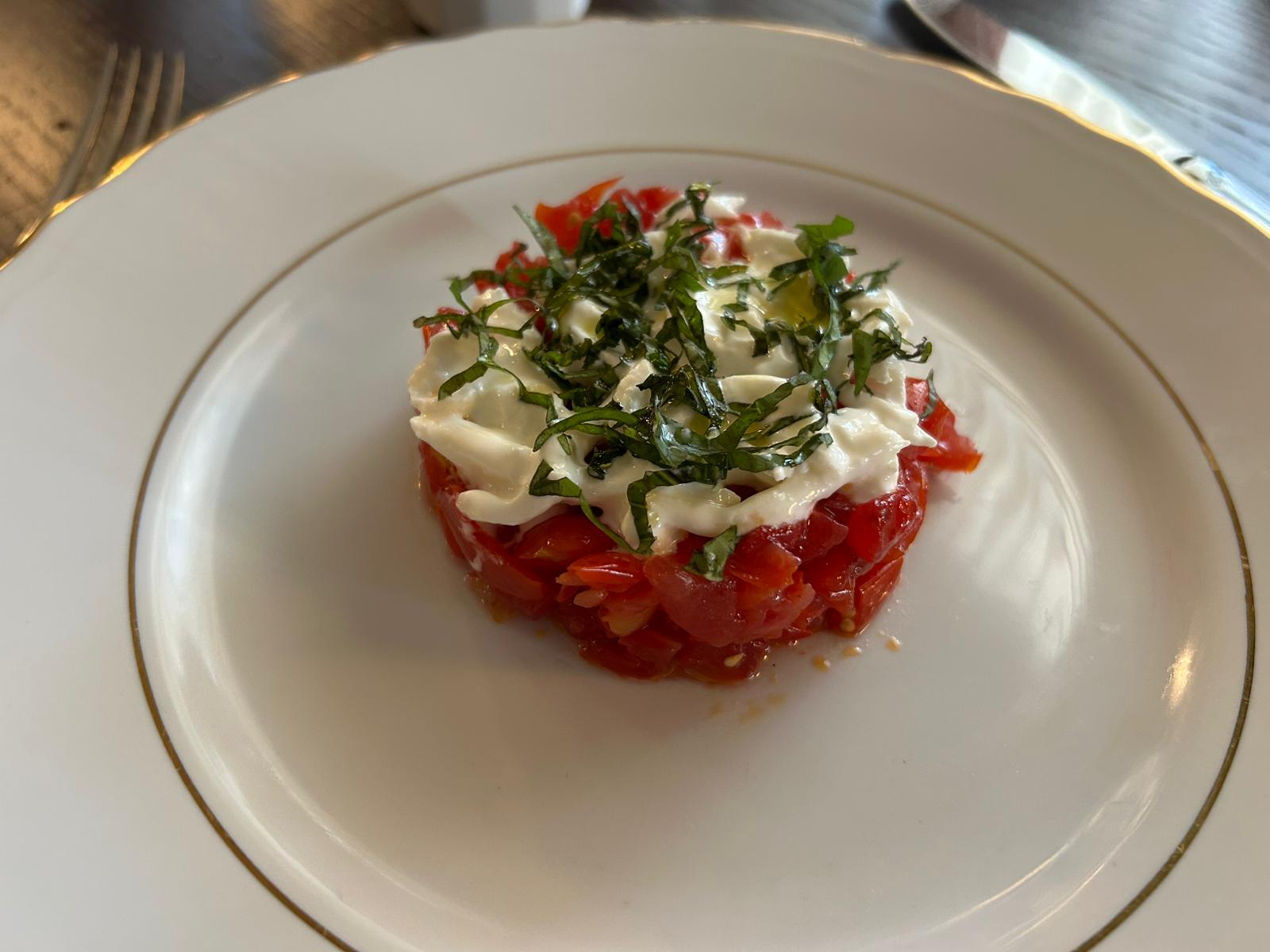 Tra gli antipasti la novità è la Tartàra di anguria grigliata, pomodori e stracciata. Un piatto dove l’acidità del pomodoro sposa i sentori di vaniglia dell’anguria, a fare da collante la cremosità della stracciata, che non copre, anzi esalta, il gusto di pomodoro ed anguria: squisita!