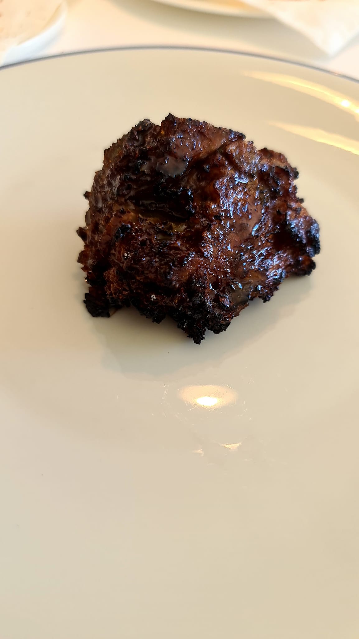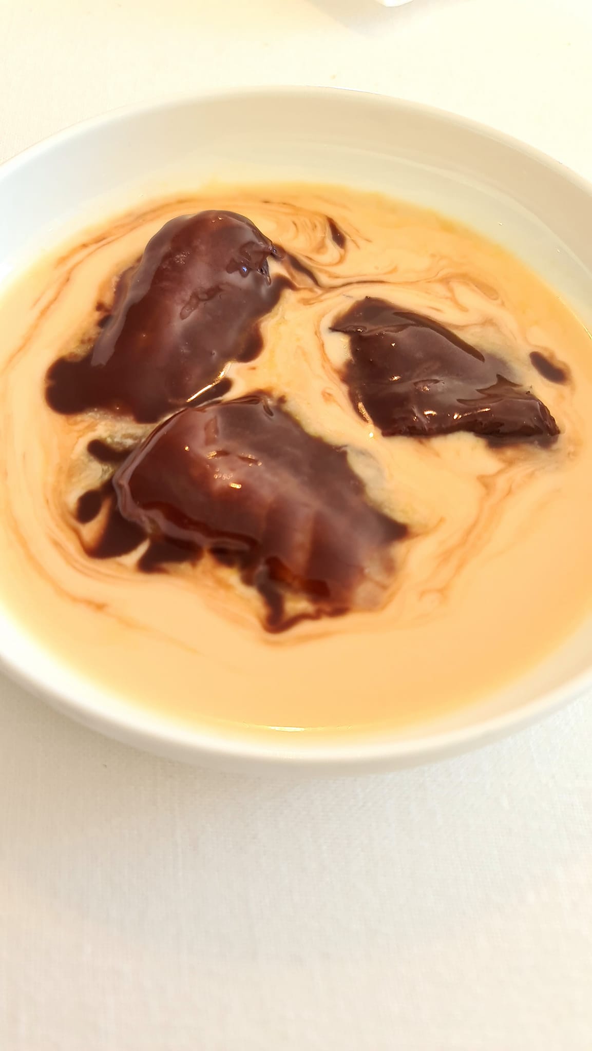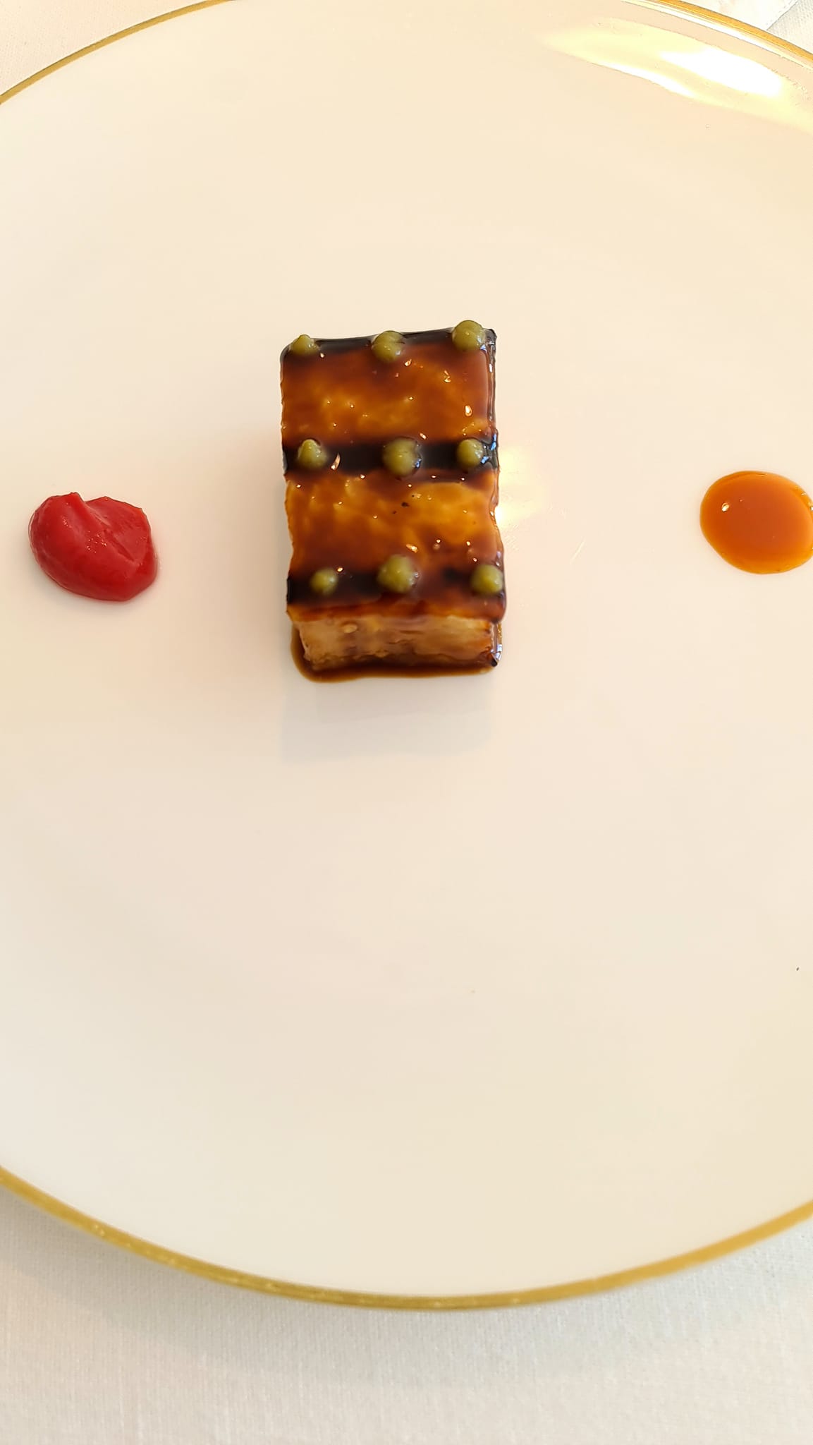 La Lattuga alcolica e crema di latte e i capellini laccati al pomodoro, la melanzana arrosto e caramello di pesca, uno nell’amaricante, l’altro nelle acidità e la melanzana nell’esaltazione del gusto vegetale sono tre picchi di notevole spessore nelle singole sensazioni. I ravioli con ricotta di pecora e acqua diventano un piacevole momento di alleggerimento mentale e palatale prima del radicchio e arachidi, in cui si raggiungono punti di amaro difficili, ma allo stesso tempo interessanti, mediati da qualche cucchiaio generoso della crema all’acqua di arachidi, perché anche in questo caso il lavoro tecnico è notevole e la leggerezza della crema è la chiave di svolta del piatto.