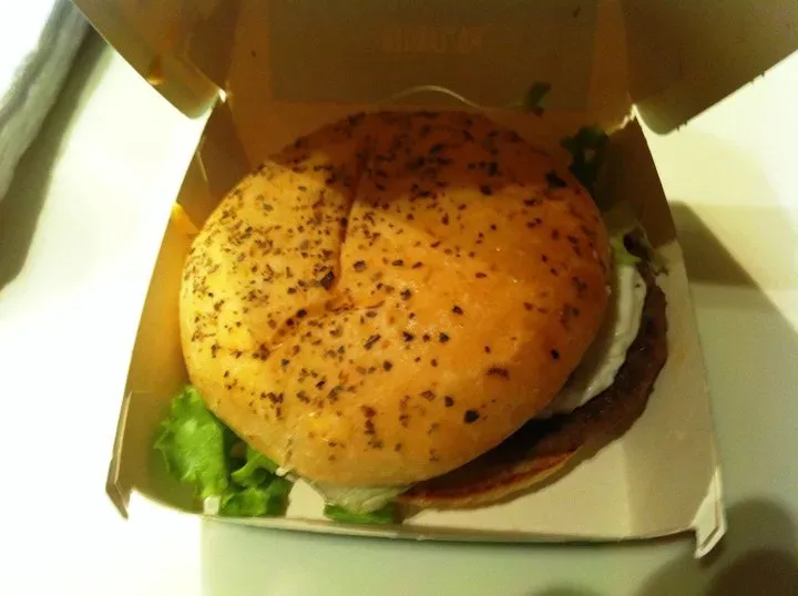 Questa è la ricetta: un panfocaccia con origano, tostato appena prima della farcitura con una salsa a base d’uovo e olio con aggiunta di pomodoro e basilico ligure, un hamburger di carne bovina italiana, due foglie di lattuga “Batavia” e una mozzarella: non una fetta, una mozzarella “intera” (che poi somiglia nè più nè meno a una fetta). Il prezzo? Due euro e 40 centesimi, quattro e 20 se inserita in un menù con bevanda e patatine fritte.