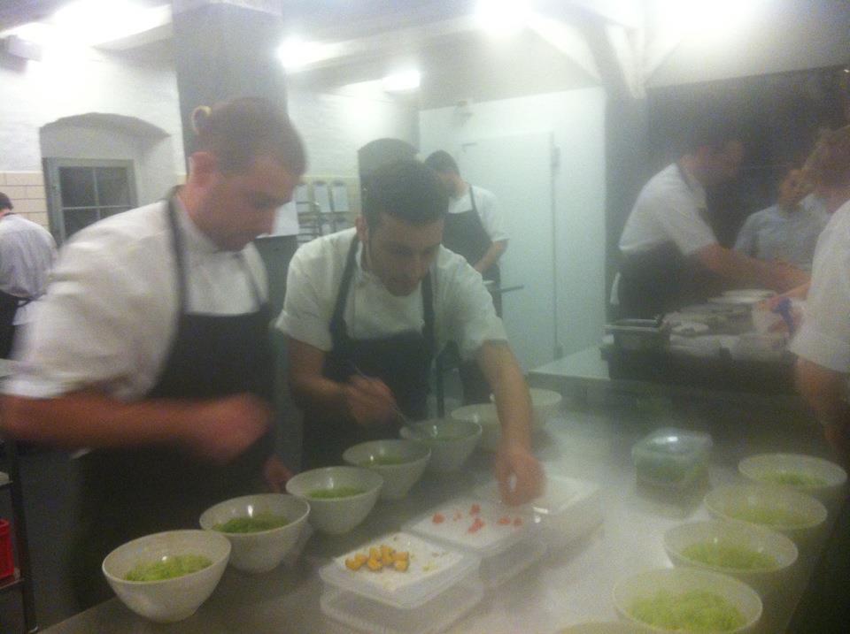 “La cucina è composta da più sections: la prima per i piatti freddi; la seconda per i piatti caldi di carne e di pesce; poi c’è lo snack per gli stuzzichini; il pastry per i dessert; il test kitchen per la prova dei piatti nuovi; e in ultimo il team, dove si cucina per il personale e si preparano piatti diversi. Al Noma si pratica una nuova metodologia non classificabile e non riscontrabile altrove, in cui il concetto di impiattare e la ricerca spinta dei sapori inusuali, forti e acidi arriva all’eccesso. René ripete spesso che: “…nella cucina moderna d’autore è fondamentale avere un proprio stile personale che ti deve contraddistinguere dagli altri…”. E credo che lui, stando ai risultati, ci riesca perfettamente”.