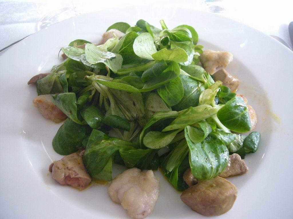 Il primo piattino è fresco e saltante. Animelle e foie-gras, valeriana.