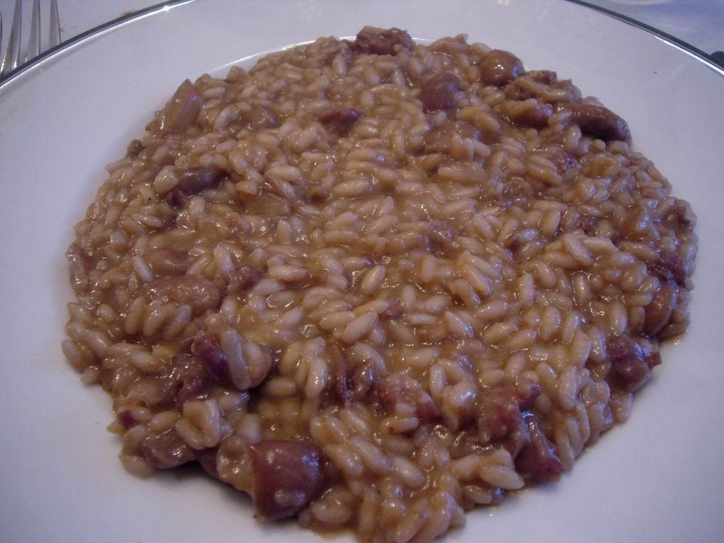 Poi, con un uppercut senza paragoni, il piatto della festa, per me. E’ un risotto ma non è un risotto. E’ popolare ma è anche pop. Forse i Costardi lo fanno più strano, o forse solo più contemporaneo, ma questo è sesso, scabroso, maiale. E’ lussuria pura, bavosa, animale, ancestrale. E legale è leccare il dito passato sul fondo del piatto.