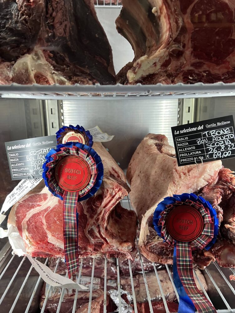Il menù, in definitiva, si conferma – sulla falsa riga di quello precedente – vario, ma mai esagerato. Il rischio di avere in carta sia delle pizze che dei primi o secondi che siano è di creare confusione, anche nel cliente stesso. Al Cortile questo non accade, anzi. I secondi, peraltro, sono tutti correlati alla carne: principalmente rossa, ma anche bianca (come nel caso del galletto). Sono presenti diversi tagli, sia in menù che fuori. Quest’ultimi, infatti, variano in base alla disponibilità. E con essi cambia anche la razza, la frollatura e il costo al kg.