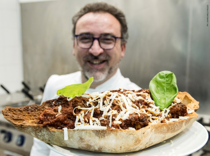 Lino Scarallo con pane e ragù in occasione della prima edizione di Ragu 7su7: bisogna essere napoletani per pensarequesto :-)