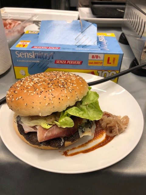 Oggi la neo- ristorazione si compone non solo di fast- food ma di bar, mense, ambulanti, pizzerie, ristorazione da viaggio, agriturismo, wine -bar,food -hall, botteghe, macellerie, pescherie,street food e food-delivery. Tre sono gli elementi indispensabili per queste attività: la comunicazione, la creatività e le materie prime giudicate dal consumatore sempre più importanti. L’hamburger di chianina è nato per esempio dall’ utilizzo dei prodotti DOP e IGP, tendenza aumentata nel settore della neo-ristorazione del 39% negli ultimi cinque anni . Sempre più attività valorizzano nel menù soprattutto i formaggi, gli aceti, la carne e i salumi, i prodotti ortofrutticoli e l’olio di oliva DOP e IGP. Il contest promosso da Qualivita e Aicig con la collaborazione dei Consorzi di Tutela Dop e IGP per creare un buon panino con questi prodotti non è stato un’operazione banale perchè non è semplice, come ha spiegato lo chef Raffaele Bellini (chef McDonald’s Italia) agli alunni di due istituti alberghieri romani che si sono cimentati in una gara, creare il panino perfetto. Pane e salame, pane e mortadella, pane e formaggio sono sempre nell’immaginario di tutti quando si parla di panini e per creare una nuova farcia bisogna procedere per gradi. Innanzitutto si può cominciare da un disegno, colorarlo e dalla cromaticità espressa si può procedere selezionando gli ingredienti e quindi i fornitori poi bisogna pensare all’anatomia del gusto; in un buon panino ci deve essere una parte asciutta, una croccante ed una morbida. Fatto tesoro di questi consigli e scelti gli ingredienti tra circa 40 diversi prodotti DOP e IGP i ragazzi dell’ Istituto Vincenzo Gioberti e Ipsseoa Amerigo Vespucci di Roma hanno creato quattro panini presentandoli ad una giuria di giornalisti ed esperti del settore che hanno giudicato il nome, la presentazione e il gusto. Ipsseoa Amerigo Vespucci ha vinto con il panino intitolato KM 1300, perchè questi sono i km che uniscono il nord e il sud d’Italia. Hanno utilizzato Vitellone bianco dell’Appennino centrale IGP razza Chianina bordato con Pancetta Piacentina DOP croccante, Provolone Valpadana DOP fuso, Radicchio Rosso di Treviso IGP, salsa agrodolce alla Cipolla Rossa di Tropea Calabria IGP e Aceto Balsamico di Modena IGP, salsa maionese vegana allo zafferano di San Gimignano DOP. Tra gli altri ingredienti impiegati dai giovanissimi chef in erba negli altri panini c’erano lo Speak Alto Adige IGP, la fonduta di Parmigiano Reggiano DOP, la Brovada DOP, l’Insalata Luisa IGP varietà gentile, La Mozzarella di Bufala DOP, La Pancetta Piacentina DOP, Piave DOP.