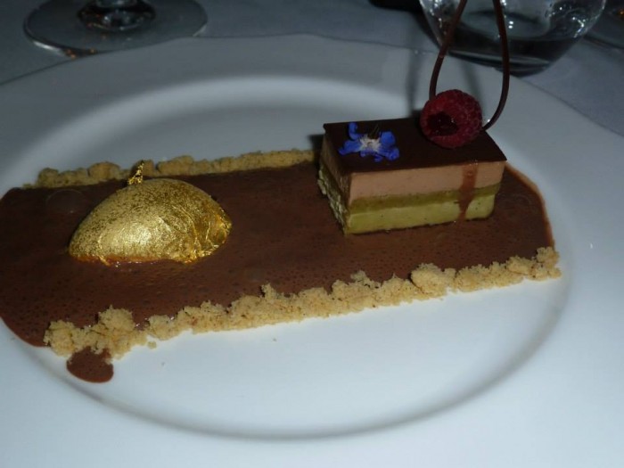 Si cambia versante, dal mare alla terra, con una versione rivista e corretta di un volatile spesso presente nell'alta ristorazione: Piccione affogato con crema di fegato grasso e ananas. Cotture perfette, anche qui nonostante la grande materia a rischio di sovrabbondanza, equilibrio mirabile e grande godimento per gli appassionati del genere!