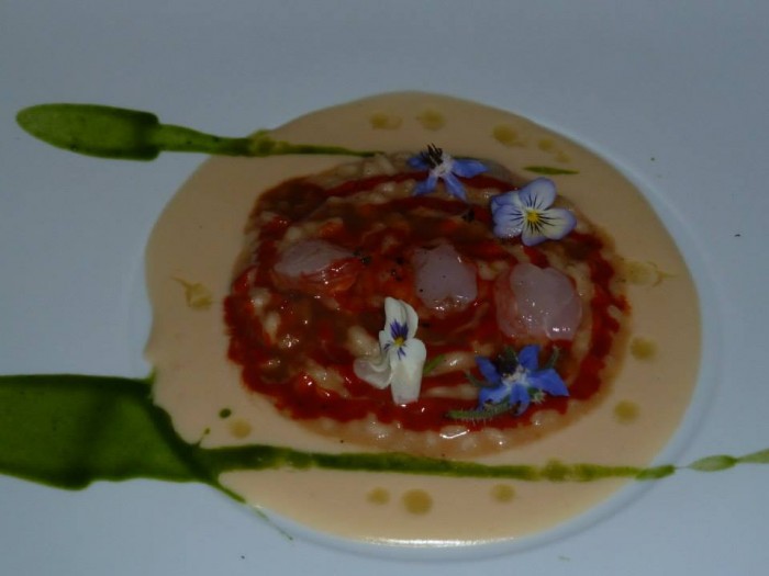 Tra i primi colpisce e rimane in memoria tra i grandi piatti il Risotto alle mandorle con succo di gamberi rossi e caffè di cicorie, abbinamento curioso e azzeccato, con le note amrognole a far da contraltare alla dolcezza dei gamberi e alla morbidezza di un risotto di grande esecuzione.