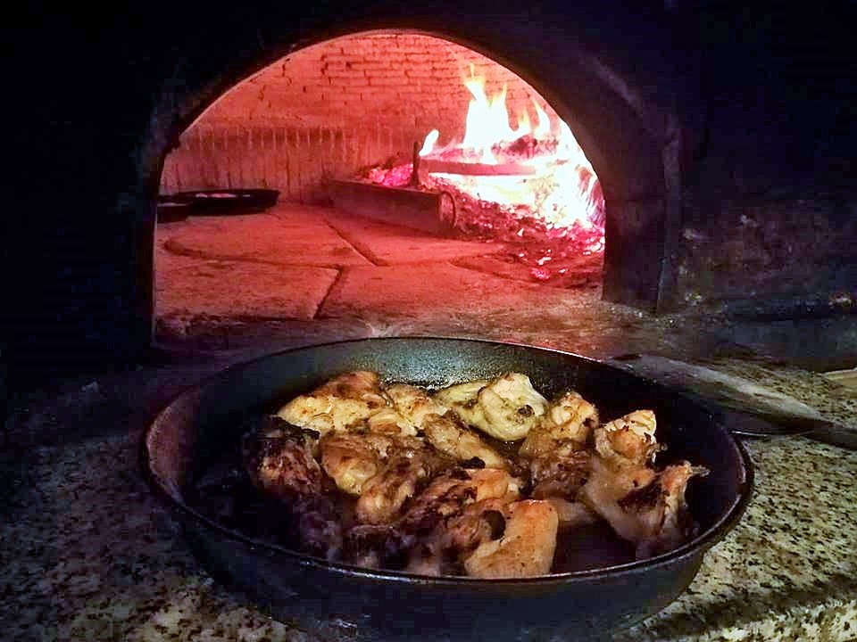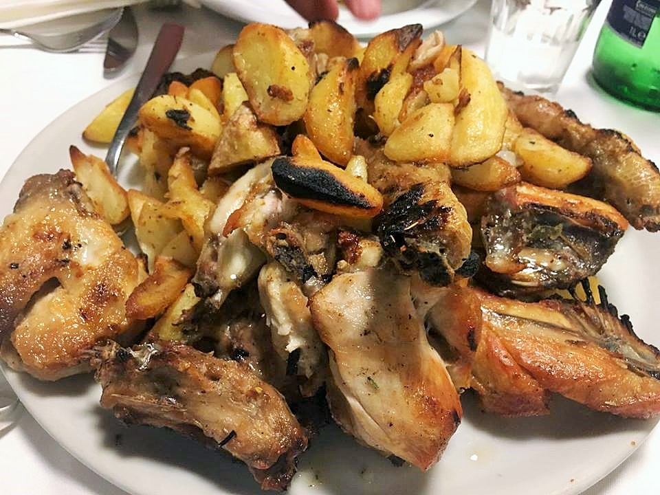 Buona la pizza, gli antipasti ma la sostanza e l’attenzione va sul pollo scucchiato ovvero un tipo di cottura del volatile che lo vede prima tagliato a pezzi e poi cotto in forno a legna con le patate, in apposite teglie.