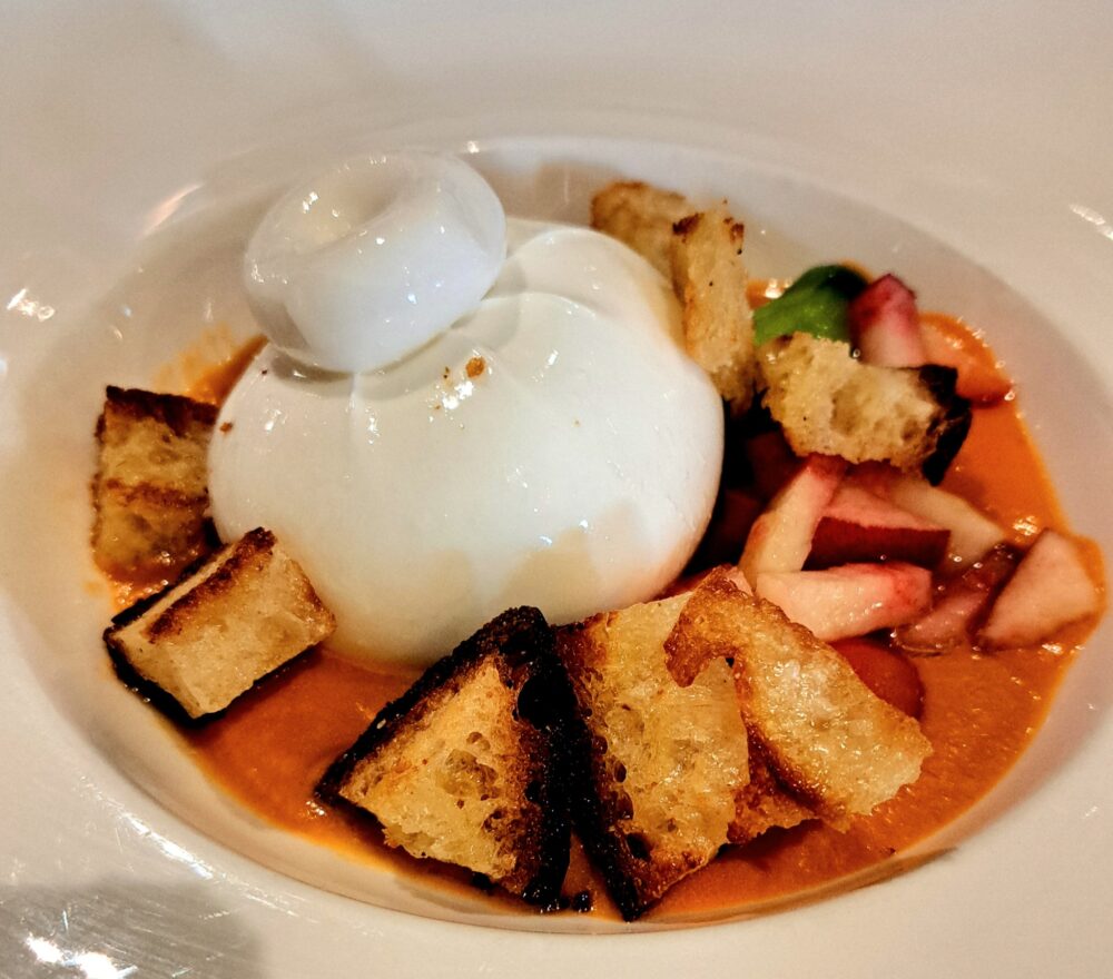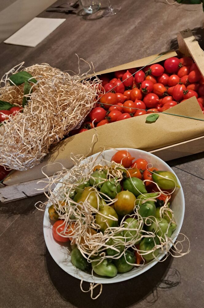 Il viaggio nel gusto ha preso forma in una sequenza di piatti memorabili, veri racconti di identità culinaria: PasCuotto di pasta pizza con Pomodorino del Piennolo del Vesuvio DOP, origano di montagna e olio extravergine di oliva dell’azienda ospite; Mezzanelli di Gragnano allo scarpariello con Pomodorino del Piennolo in trionfo; Burrata con gazpacho di Pomodorino del Piennolo, pesca bianca e fresella; Ricotta di cestino con confettura di Piennolo, come un abbraccio tra dolcezza e acidità.