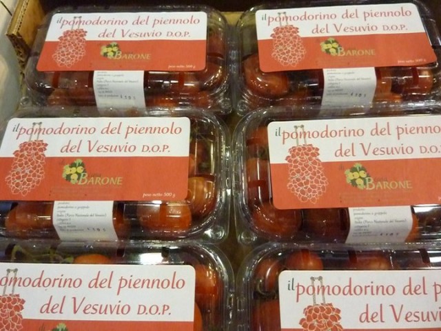 Tra le produzioni dell’area del Vesuvio, quella dei Pomodorini del Piennolo è tra le più caratteristiche. I piccoli pomodori (20-25 grammi) coltivati nella zona sono riuniti in grappoli (schiocche) e legati con cordicelle di canapa. Devono il nome piénnoli (“pendoli”), o spongilli, all’abitudine di appenderli ad asciugare alle pareti o ai soffitti.