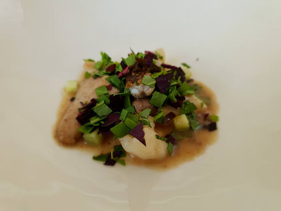 Il mare dentro. Mauro Uliassi, Uliassi, Senigallia. Realizzato con il “quinto quarto” del pesce: teste, interiora, cuori, fegati. Violento, profondo e intenso solo come il mare può essere. Un mare difficile, “Mare che non ti ha mai dato tanto” come dice Pierangelo Bertoli nella sua canzone pescatore, di cui non bisogna buttare nulla. Un piatto cerebrale, che però ti colpisce alla pancia e lascia in bocca la bellezza di essere colpito all’improvviso da un onda del mare. Studio, ricerca e tecnica. In The End
