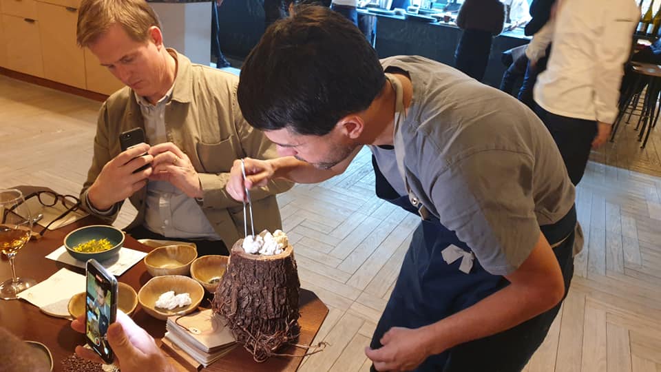 L’occasione è stata una cena all’AlpiNN, un rifugio a Plan de Corones, nato dalla sinergia tra Norbert Niederkofler e Paolo Ferretti, poprio tra Norbert e Virgilio Martinez agli inizi di gennaio. “Adesso proverete il cacao come non l’avete mai provato! Il cacao è un frutto e noi peruviani così lo trattiamo, uscendo fuori dal paradigma che gli europei hanno imposto”. Aveva ragione. Un vero e proprio viaggio nel mondo del cacao, intenso, profondo, legato indissolubilmente alla propria terra d’origine. Una serie di assaggi onirici che raccontano la lunga storia del popolo peruviano con questa pianta. Un dolce – definirlo dolce forse è riduttivo – non dolce, diviso in più assaggi. Si usa tutto della cabossa: la buccia, i filamenti, i fiori, i semi, finanche la parte gelatinosa. La profondità dei toni acidi e amari è davvero notevole, si raggiungono sfumature davvero inusuali. Uno dei piatti più buoni provati negli anni. Qui l’alta cucina svolge in pieno il suo ruolo, che è quello di stimolare sì il palato, ma soprattutto la mente. La prossimità, il contatto con la materia prima, la tradizione, hanno un ruolo determinante nella cucina d’autore perché, nel futuro, saranno temi sempre più centrali. L’unico vero difetto è che vorrei provare il dolce di Virgilio di nuovo al più presto. Abbinamento musicale: En el muelle de San Blas, Manà.