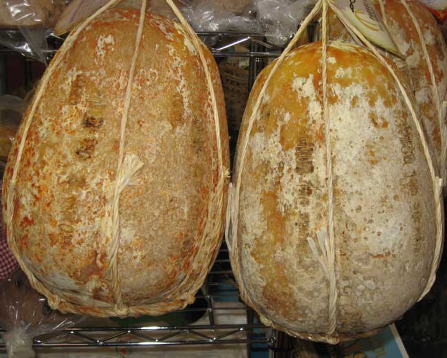 Come succede a tutti i prodotti autentici e artigianali tramandati di padre in figlio, i suoi nemici più implacabili sono le grandi industrie dell’agro-alimentare e le normative europee, pensate e ideate da chi entrerebbe solo con una tuta da astronauta in una pizzeria napoletana o in una trattoria dei colli romani per evitare contaminazioni batteriche. Ma che hanno fatto di male questi batteri? Chissà. Tanto per fare un esempio, questo formaggio, molto caro alla nobiltà borbonica, si può chiamare ufficialmente solo caciocavallo del monaco perché si sa, il provolone è solo…padano. Qui, però, è da sempre «Provolone del Monaco». Perché? «Ci sono molte versioni – spiega Salvatore Di Gennaro, affinatore e titolare di un punto di gastronomia di qualità a Vico – come accade per tutti i prodotti che raggiungono il successo. Quella più diffusa, e forse banale, attribuisce la produzione di questo formaggio ai monaci dei numerosi conventi della Penisola Sorrentina. Ma io ne accredito un’altra. Quando questi formaggi avevano mercato solo a Napoli perché troppo costosi erano trasportati via mare con le cianciole a remi. I produttori arrivavano in porto completamente anneriti dalla tipica muffa scura che avvolge il provolone e per questo erano sfottuti dai marinai: guarda sto’ monaco, pare proprio nu provolone». C’è anche chi sostiene che questa lavorazione sia iniziata sulle colline del Vomero e poi portata tra Vico e Agerola.