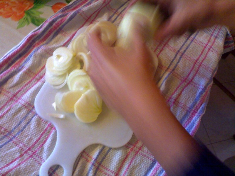 Andate sul fuoco: fondo, quindi cipolle. Quando ben trasparenti, le carni. Qui è possibile una variante: prima le carni e poi le cipolle, per maggiormente far prendere calore alla carne stessa. Fate voi.