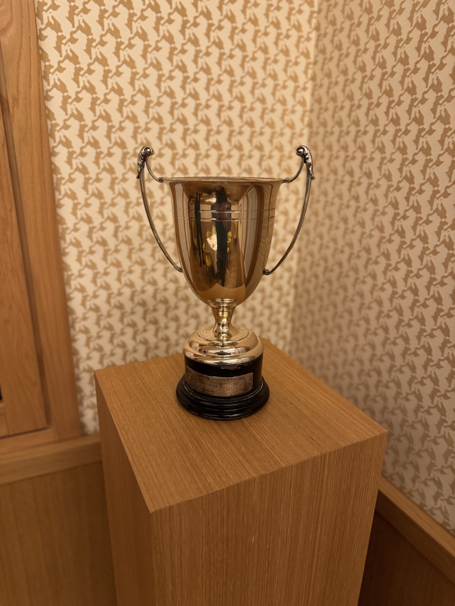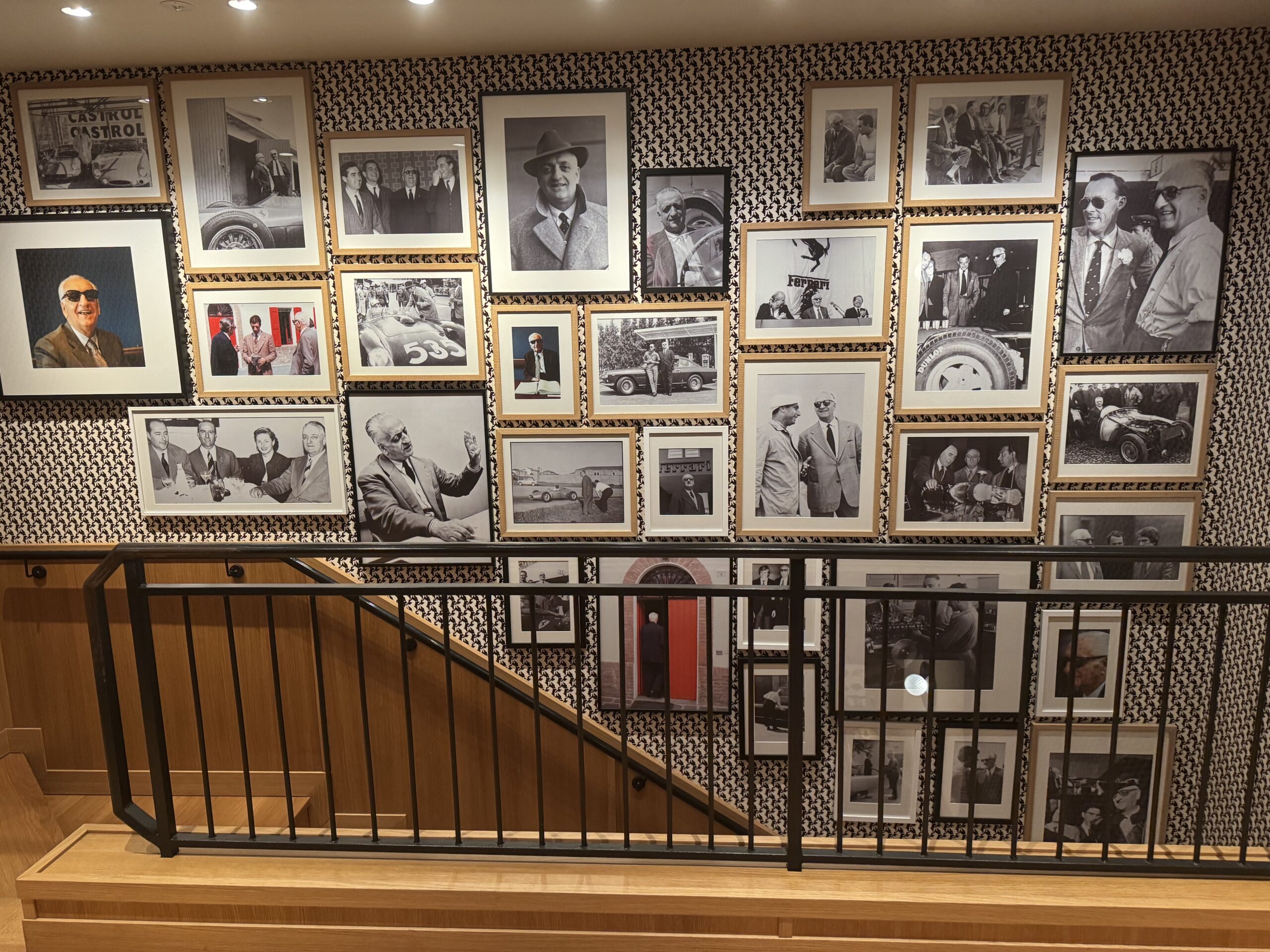 L’ambiente è curato nei minimi dettagli, con elementi che richiamano la storia del marchio: dalle sedute in pelle che ricordano gli interni delle Ferrari classiche, ai pannelli decorativi ispirati alle carrozzerie delle monoposto.