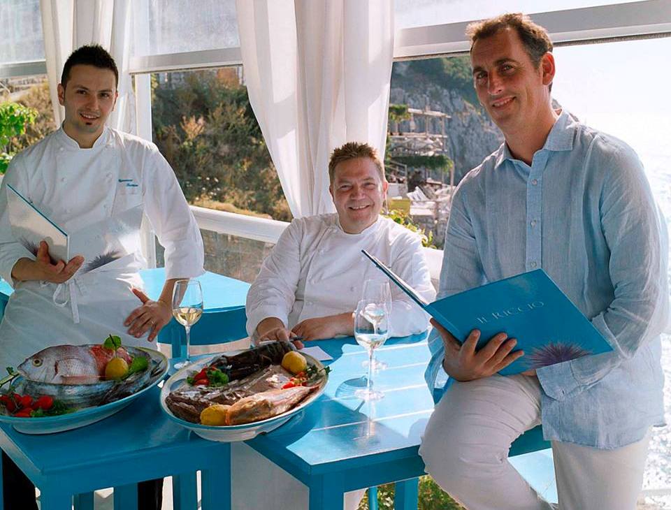 Altamente prestazionale, la cucina del Riccio ad Anacapri costituisce senza dubbio la summa di una linea gastronomica che fa del mare la sua forza. Una proposta totale formata da crudi, da grandi classici capresi e da una cucina italiana totale rafforzata da uno dei migliori servizi sull’isola azzurra. Veloce, strutturato e preparato. Il Riccio rassomiglia metaforicamente ad un’intervista. Preparata, provata, senza però perdere quella naturalezza e quella perfezione frutto dello studio e della ricerca. Ecco, queste vibrazioni costituiscono il credito e la tradizione del Riccio, indice di professionalità e rigore. La tensione al miglioramento è una componente secondaria quando la referenza principale è il godimento di un’esperienza gastronomica di grande caratura guardando la meraviglia del mare antistante la Grotta Azzurra. Frutto del lavoro del direttore Ermanno Zanini, il successo ed il consolidamento del Riccio è stato per lungo tempo un cammino in divenire in cui l’essere modaiolo del ristorante si è accompagnato ad una delle proposte complessivamente più solide, rassicuranti e seducenti della Campania. Parliamo di semplcità, non di deriva gourmet. Ciò comporta quindi una limitazione doverosa dell’essere seducente di un’estetica costruita a favore della presentazione del pescato.