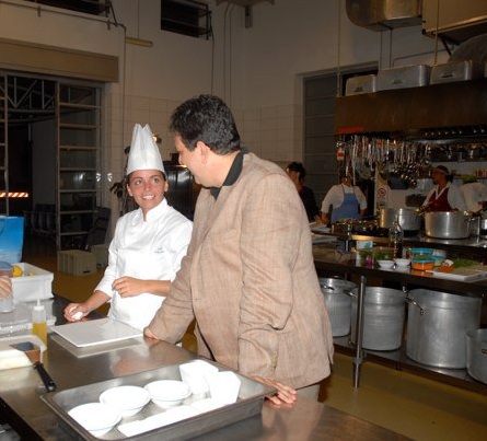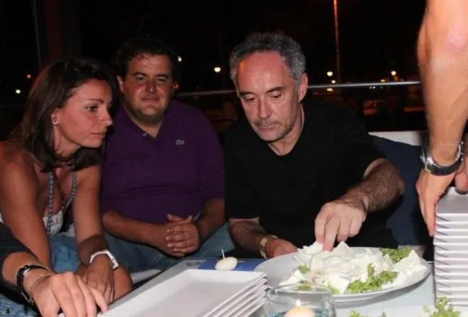 Marianna Vitale, Gennaro Esposito e Ferran Adrià a Bacoli nel 2012 con la mozzarella di bufala dop di Raffaele Barlotti