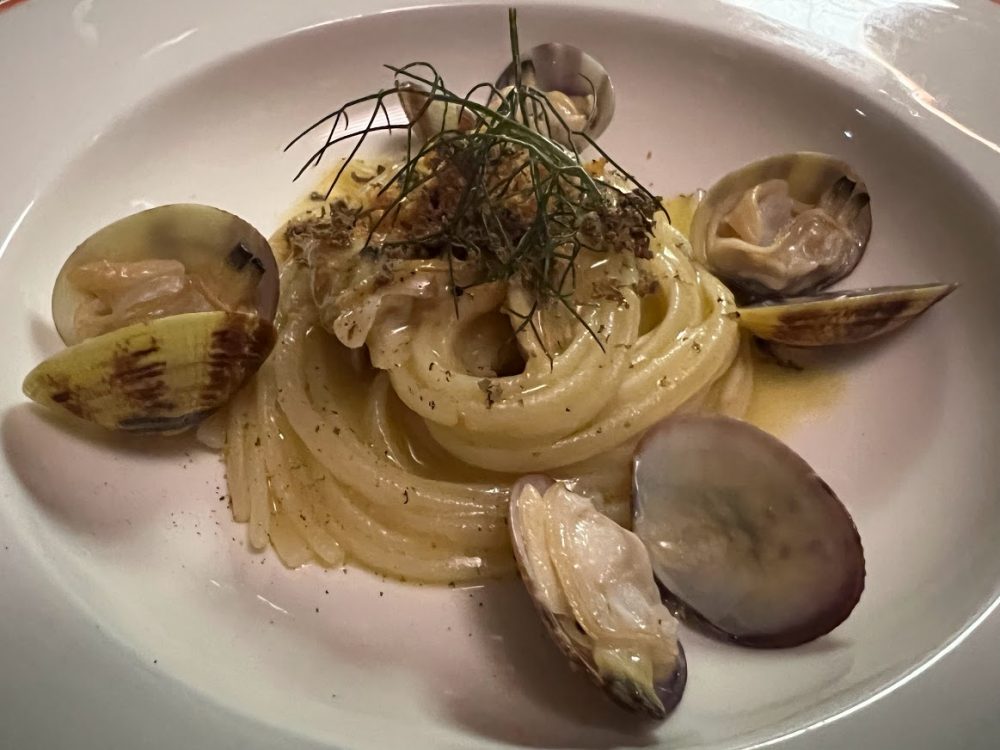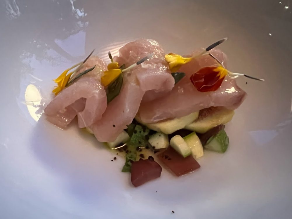 Dalle proposte del menu à la carte, spiccano gli Spaghetti al pomodoro e basilico e il Trancio di Branzino, cuore di lattuga brasata e maionese allo zenzero, il Tacos di branzino in ceviche, il carpaccio di Ricciola.