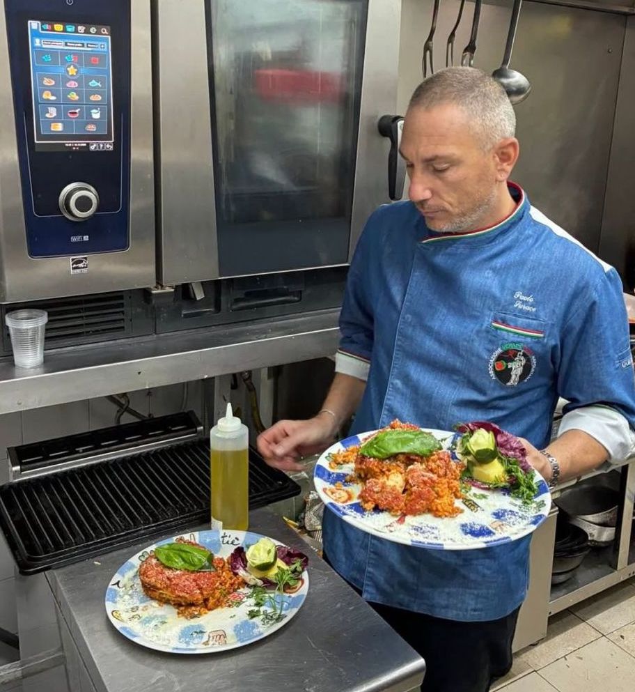 Ma Paolo, come gli ha insegnato l’indimenticato “babbo Lello” tra i fondatori dell’Associazione Verace Pizza Napoletana, lo prepara il giorno prima, per farlo assestare e insaporire. Un rito per amici e clienti, che tradizionalmente si incontrano da Paolo per una porzione di ricco sartù ma anche per i tanti turisti che restano conquistati dalla versione di Surace e dei suoi chef. Si comincia con la preparazione del ragù napoletano e delle polpettine poi una volta cotto il riso e unito al ragù si compone il timballo in teglia inserendo il ripieno con uova sode e provola (o a chi piace mozzarella), piselli, polpettine precedentemente fritte, parmigiano e tanto sugo.