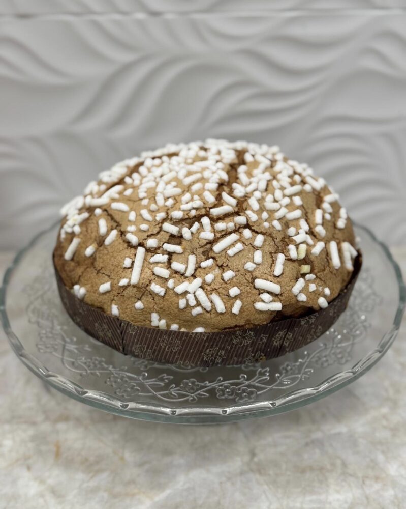 L’impasto è quello del panettone, lavorato con lievito madre e sottoposto a 72 ore di fermentazione. Una scelta che non risponde a mode o a esigenze di comunicazione, bensì alla necessità di rispettare i tempi biologici della materia viva. La struttura finale è coerente: soffice, ariosa, priva di eccessi zuccherini o aromatici. L’arancia candita, unico ingrediente di arricchimento, introduce una nota fresca e stagionale, senza spostare l’equilibrio complessivo del dolce.