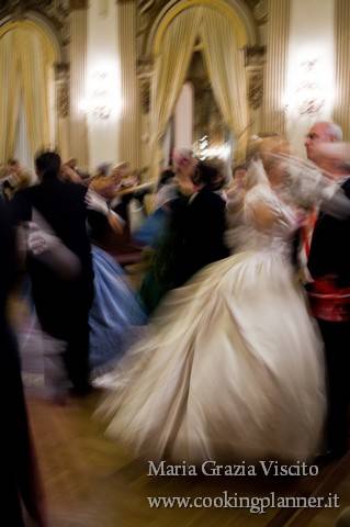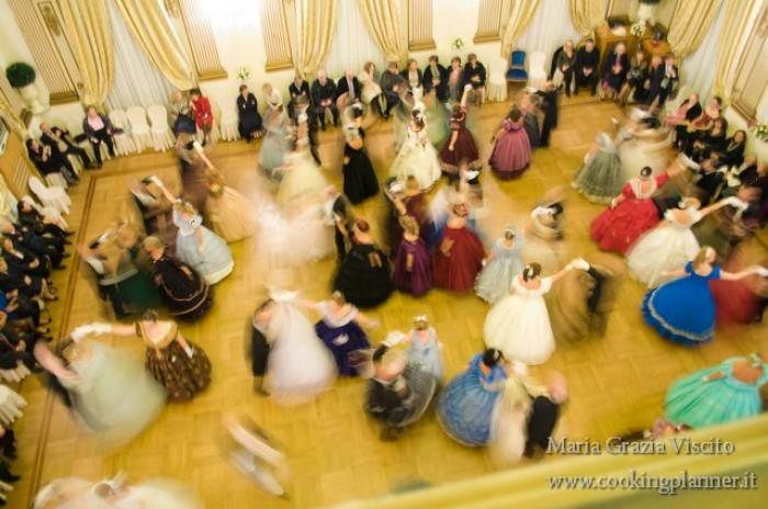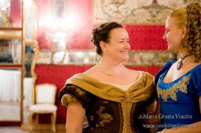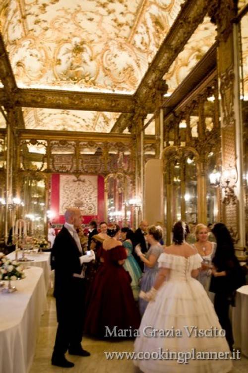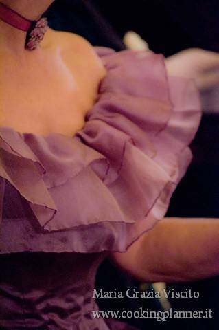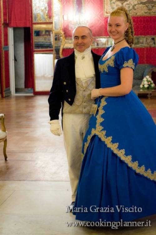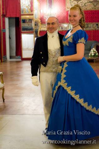 No, il timballo del Corrado, per quanto buono, non funge anche da macchina del tempo: per queste foto, l’opportunità di vedere il timballo in un luogo come Palazzo Brancaccio, circondato da affascinanti dame e cavalieri, devo ringraziare l’associazione di danza ottocentesca seguita da Fabio Mollica a Roma. Il loro ballo è stata splendido, forse anche più bello del primo a cui ho assistito. Mai atmosfera fu più adatta per un timballo nobiliare.