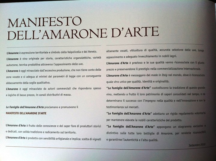 Lo dico subito: le dodici “Famiglie dell’Amarone d’Arte” (Allegrini, Begali, Brigaldara, Masi, Musella, Nicolis, Speri, Tedeschi, Tenuta Sant’Antonio, Tommasi, Venturini e Zenato), presentatesi alla stampa lo scorso 14 settembre a Milano, non mi hanno convinto del tutto. Al di là di ogni discorso sul perché di un «club dell’Amarone dell’élite», come lo ha etichettato il giornalista Sebastiano Barisoni chiamato a condurre l’incontro, ciò che più mi lascia perplesso è un certo disallineamento quanto alla qualità degli Amarone prodotti.