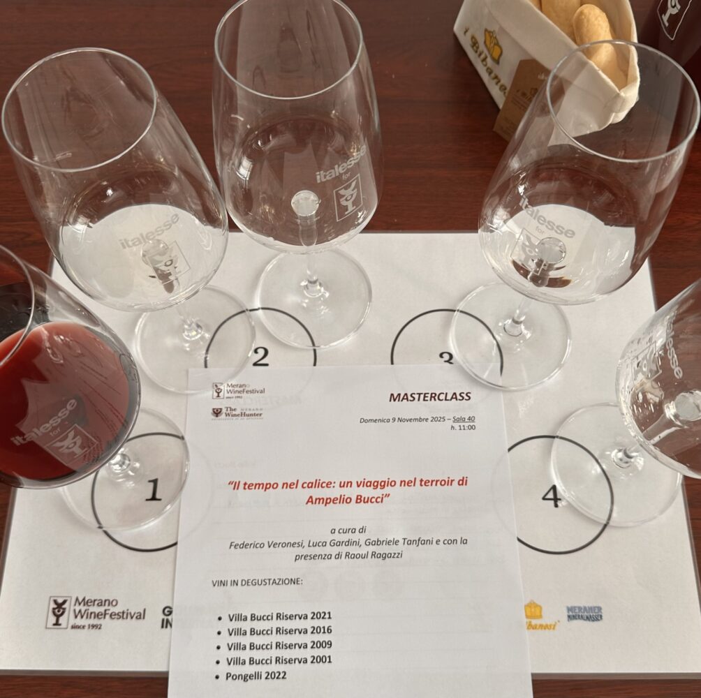 Al Merano WineFestival quella visione è tornata a vibrare e la masterclass “Il tempo nel calice: un viaggio nel terroir di Ampelio Bucci” ha scelto il registro del racconto più che della tecnica, un salotto di confronto e scambio, non una lezione.