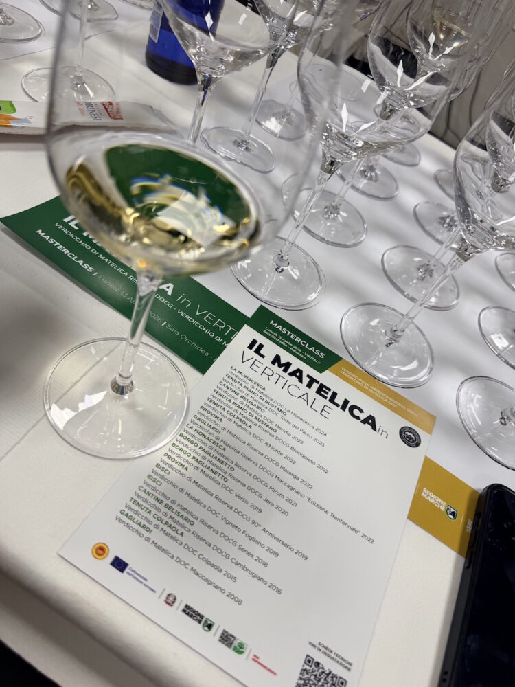 Una degustazione di sedici vini, dall’annata 2024 arrivando a ritroso fino alla 2008, attraverso le interpretazioni di otto aziende (Bisci, Borgo Paglianetto, Cantine Belisario, Gagliardi, La Monacesca, Provima, Tenuta Colpaola, Tenuta Piano di Rustano). Un percorso costruito per mettere a fuoco una traiettoria, quella di un vino che cambia senza mai perdere il proprio asse.