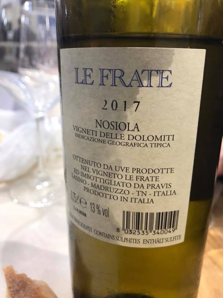 Il VINerdì di Garantito igp | Nosiola Le Frate 2017 Vigneti delle Dolomiti igt Pravis