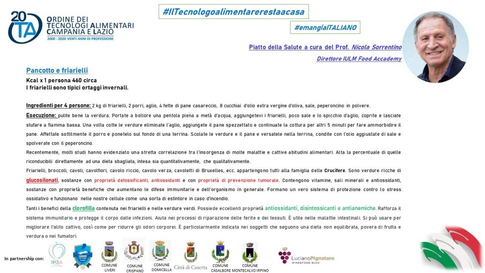 L’iniziativa ha l’intento di essere accanto di chi resta a casa, di chi lavora senza sosta nelle aziende pubbliche e private. L’applicazione dei principi delle Tecnologie Alimentari a casa (cotture, conservazioni ecc), una corretta alimentazione e l’attivazione di buone prassi igieniche possono preservare a non far perdere determinate caratteristiche nutrizionali agli alimenti che potrebbero essere importanti per difenderci da qualsiasi malanno stagionale.