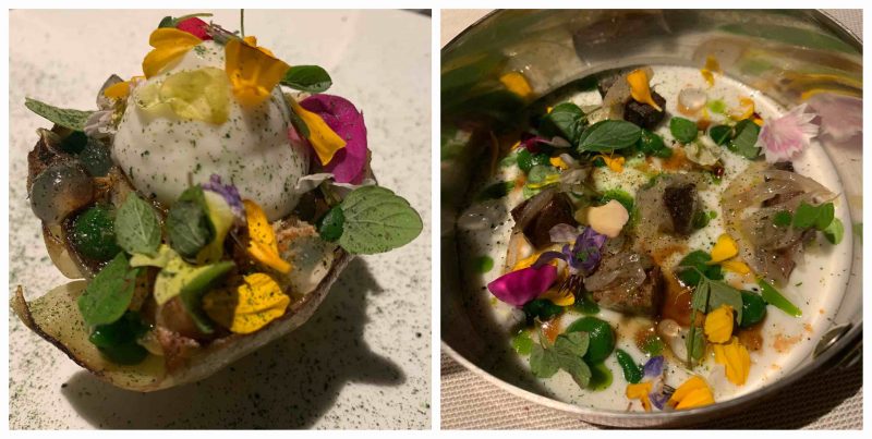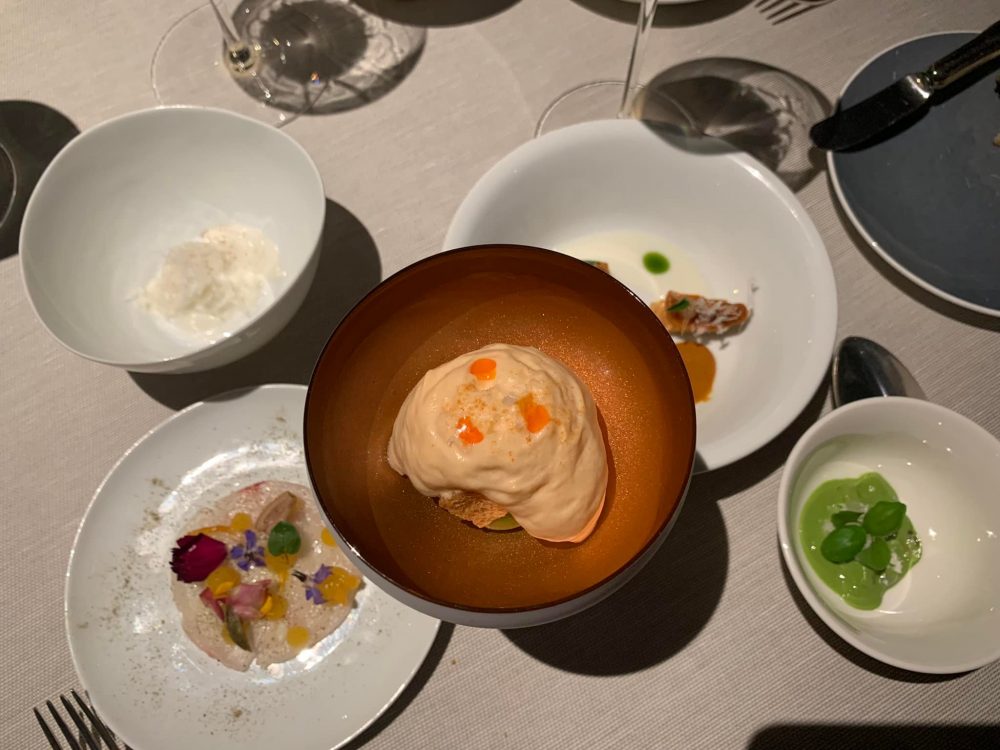 Ed eccoci di nuovo in uno dei ristoranti con vista tra le più spettacolari del mondo voluto nel 1998 dal proprietario Roberto Wirth. Al timone c’è Andrea Antonini, under 30, romano de romasud, con tanta gavetta alle spalle: Roy Caceres, poi di Quique Dacosta e dei fratelli Roca a Girone e da Crippa ad Alba dove è arrivata la telefonata da Roma.