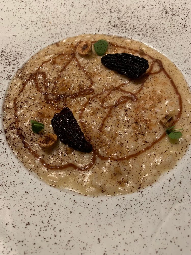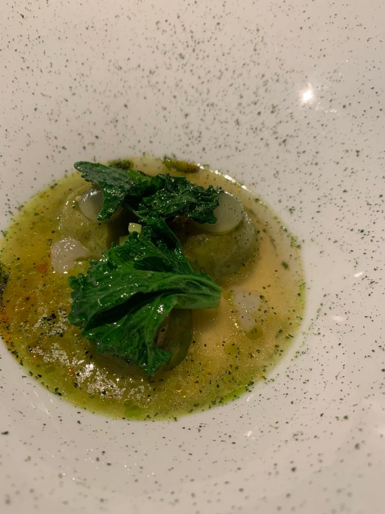 Imago all’Hassler – Ravioli di fegato di coniglio, spugnole, brodo di cacao e cedro